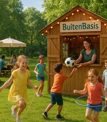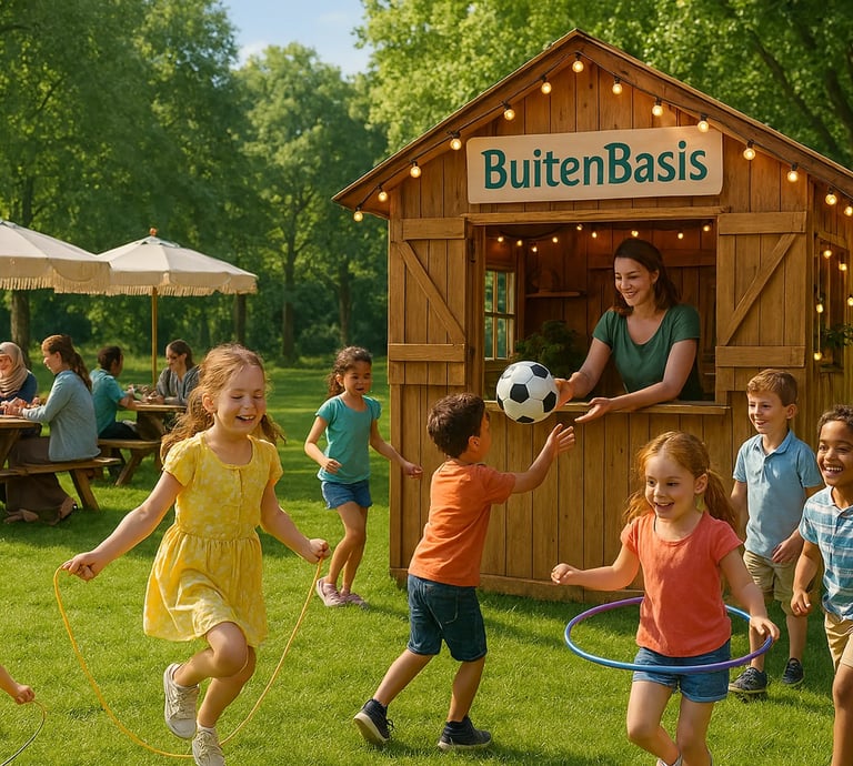 BuitenBasis is de gezellige ontmoetingsplek in het Schoterbos in Haarlem Noord, waar kinderen samen buitenspelen en (groot)ouders elkaar ontmoeten.